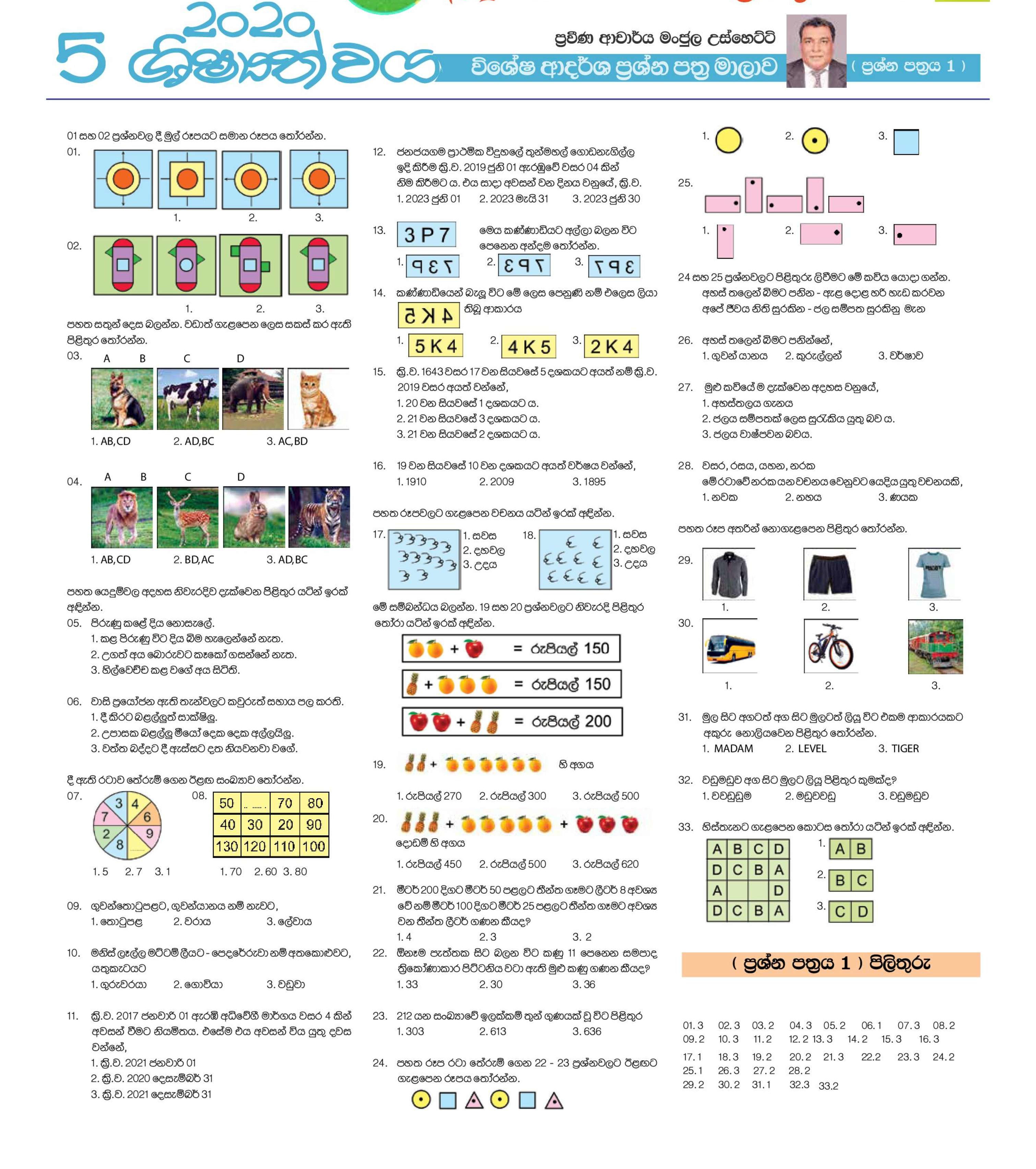 2020 Grade 5 Scholarship Exam Model Paper - Grade 5 Exam 2020 Paper
